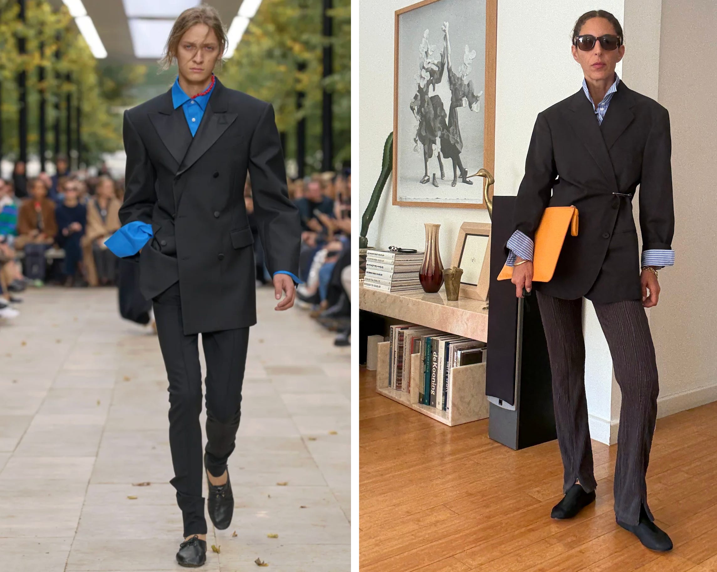 Phoebe Philo, is after all, a pants girl. Her tenure at Chloé was devoted to the noble pursuit of making butt-flattering trousers. Now, she doesn’t need to try that hard. I was listening to stylist Sarah de Mavaleix on Fashion People talk about how commanding she felt, all five-foot-two of her, reverberating with her most potent self in them. That, truly, is the irrefutable power of getting into Phoebe’s pants.