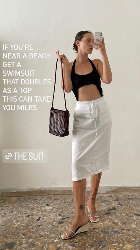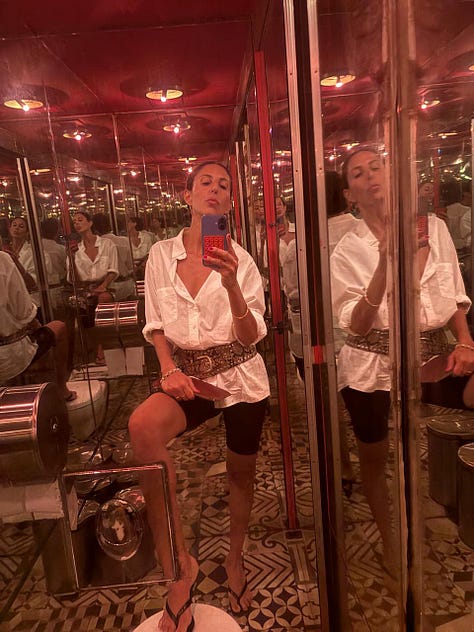 A big part of it stems from anonymity. Not the invisibility that comes from dressing like everyone else, rather the liberating kind…where no one knows your name, your title, your usual hemline. Where your unread emails can't reach you and neither can your better judgement. It’s the closest thing to being feral in a controlled setting. Nothing invites the undoing like heat, humidity and a Campari spritz before noon.