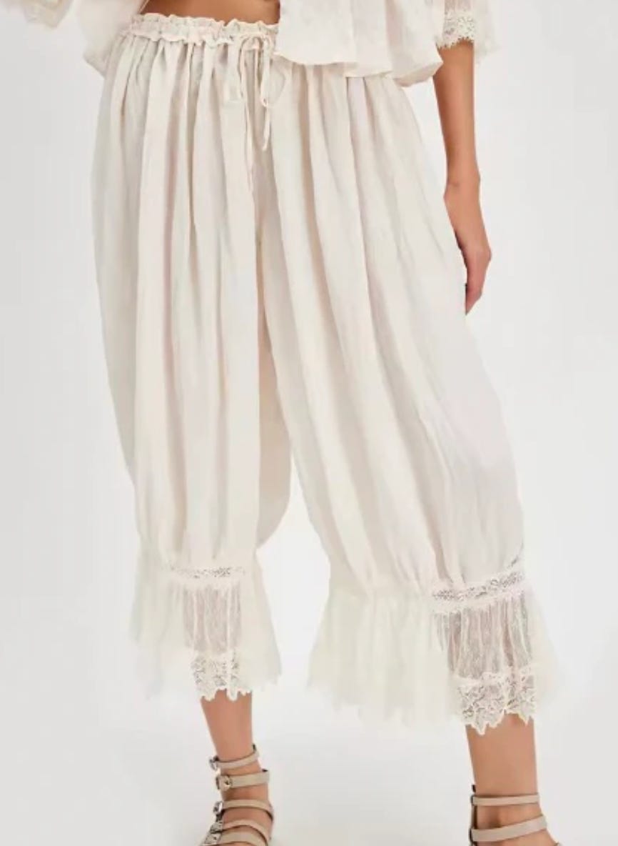 Bordello bloomers. Not my usual style. Yet, they speak to a side of me that I don’t often heed. At first glance they read boho. But squint. Tilt your head, a different story. Not innocence, but something seedy, of the brothel inclination. Reminiscent of Emmanuelle soft porn - hair in a bun, tendrils askew from an afternoon tryst. Imagine them with a frayed tank and ballet slippers, a chandelier earring dangling for distraction. An outfit barely contained, one hot breeze away from unraveling. It’s a summer pill I’m ready to swallow. Try them out and see.